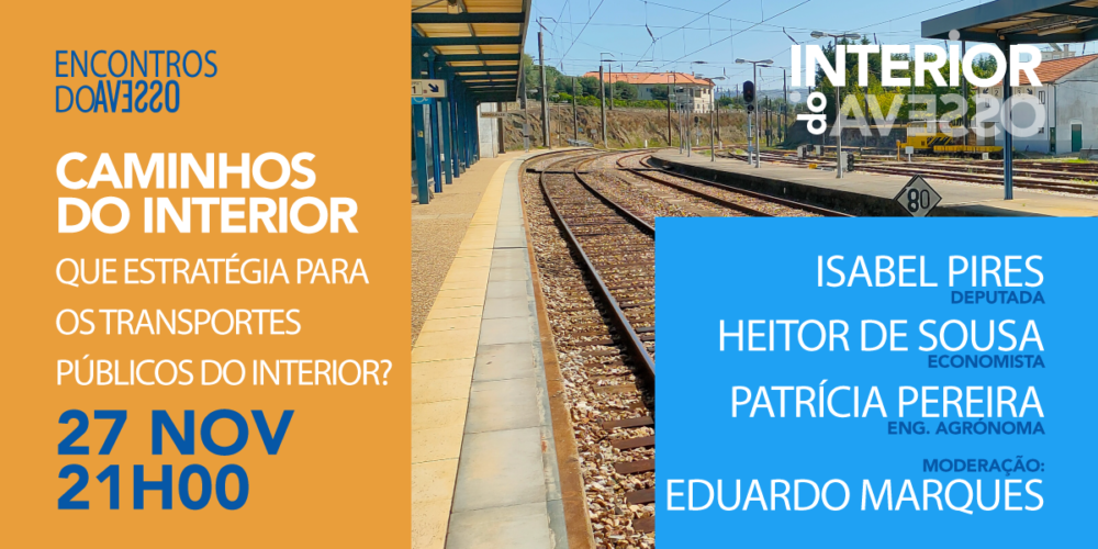 O Interior do Avesso promove um Encontro do Avesso online, com transmissão em direto, na próxima sexta-feira, dia … Continue a ler Caminhos do Interior – Que estratégia para os Transportes Públicos no Interior?