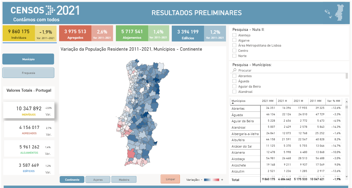 Explicou que mesmo havendo uma predominância de saldos demográficos positivos nos concelhos do litoral, “essa variação” é em grande parte “mais ténue” do que nos censos de 2011. As exceções resultam de fenómenos localizados e não de crescimentos homogéneos.