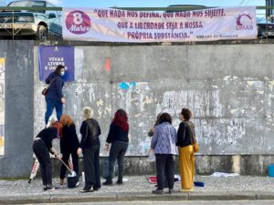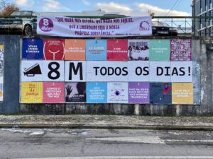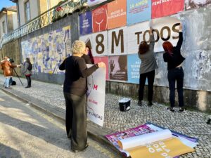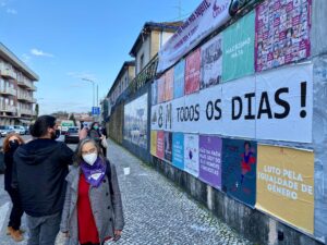 A Plataforma Já Marchavas construiu ontem (8 de março) um mural em Viseu, junto à PSP, para assinalar o Dia Internacional das Mulheres. O mural é constituído por imagens com frases e datas representativas da luta pela igualdade de género, que se faz todos os dias. O manifesto da iniciativa destacou a forma como a crise pandémica aprofundou as desigualdades vividas pelas mulheres.