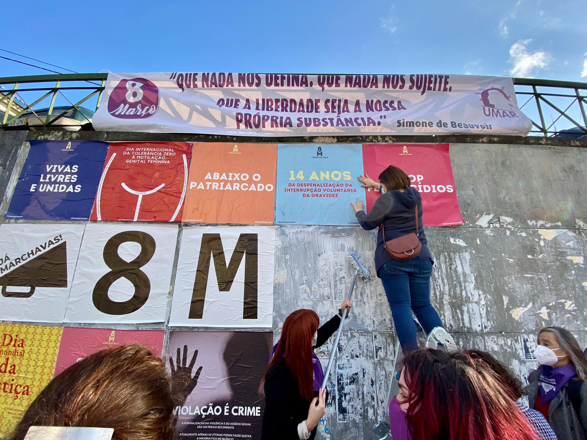 A Plataforma Já Marchavas construiu ontem (8 de março) um mural em Viseu, junto à PSP, para assinalar o Dia Internacional das Mulheres. O mural é constituído por imagens com frases e datas representativas da luta pela igualdade de género, que se faz todos os dias. O manifesto da iniciativa destacou a forma como a crise pandémica aprofundou as desigualdades vividas pelas mulheres.