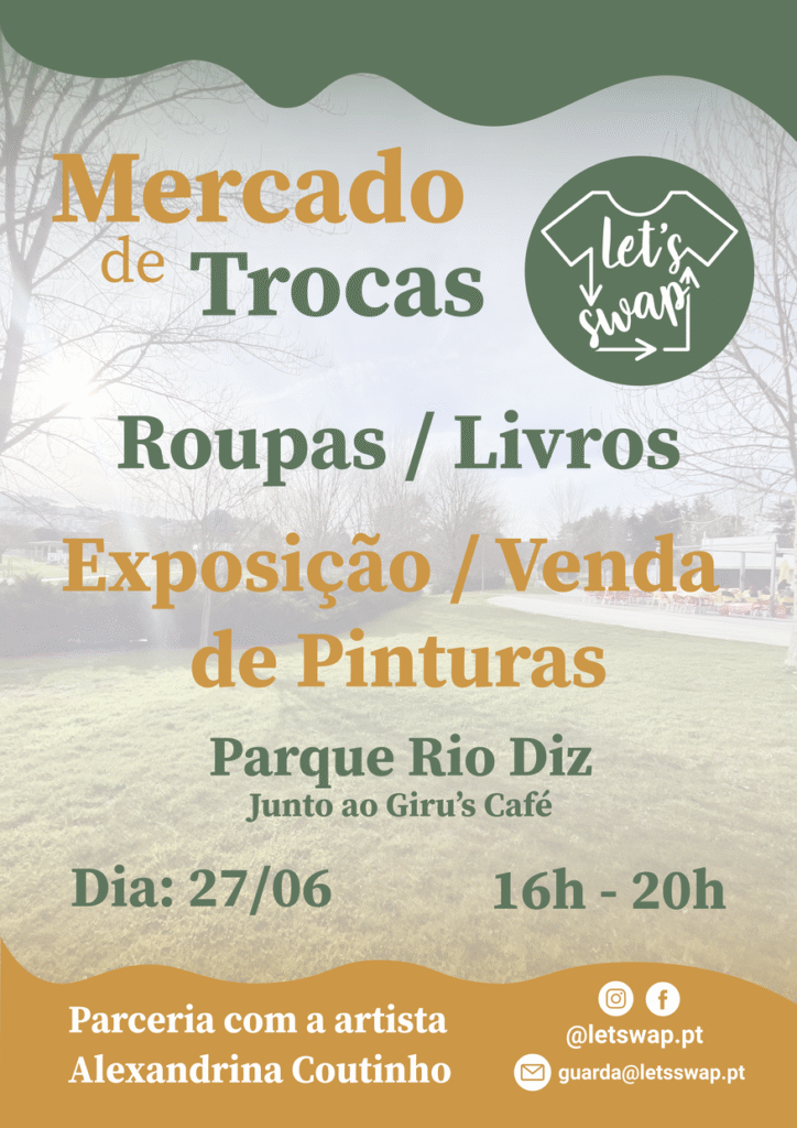 Com origem no distrito do Porto, a Let’s Swap tem vindo a realizar mercados de troca na região desde 2024, tendo também levado a cabo iniciativas em parceria com o Instituto Politécnico da Guarda. Com o objetivo de sensibilizar mais voluntários e expandir o projeto no distrito, a Let’s Swap aposta na proximidade e na criação de comunidade em torno da experiência de partilha. Já na sexta-feira, 27 de junho, será a vez do Parque Rio Diz, junto ao Giru’s Café, acolher mais um evento do género. Nesta edição, os swappers poderão encontrar roupas e livros para trocar, bem como uma exposição de pinturas da artista Alexandrina Coutinho para venda, resultado de uma colaboração com a iniciativa.