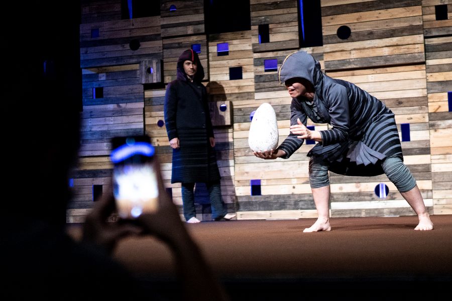 O espetáculo recorre a múltiplas linguagens – narração verbal, física e até momentos musicais -, sendo construído a partir de textos de autores como Baudelaire, David Abram ou Niall Binns, assim como de excertos da Bíblia. No processo criativo, a música desempenha um papel determinante e é interpretada ao vivo por dois multi-instrumentistas: Vitor Hugo Ribeiro e Tiago Santos.