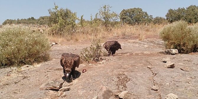Abutre-preto Lechuga | Foto por PalombarUma das duas únicas crias de abutre-preto (Aegypius monachus) nascidas e marcadas com … Continue a ler Um dos dois únicos abutres-pretos nascidos em 2020 no Douro Internacional regressa pela primeira vez ao território de origem